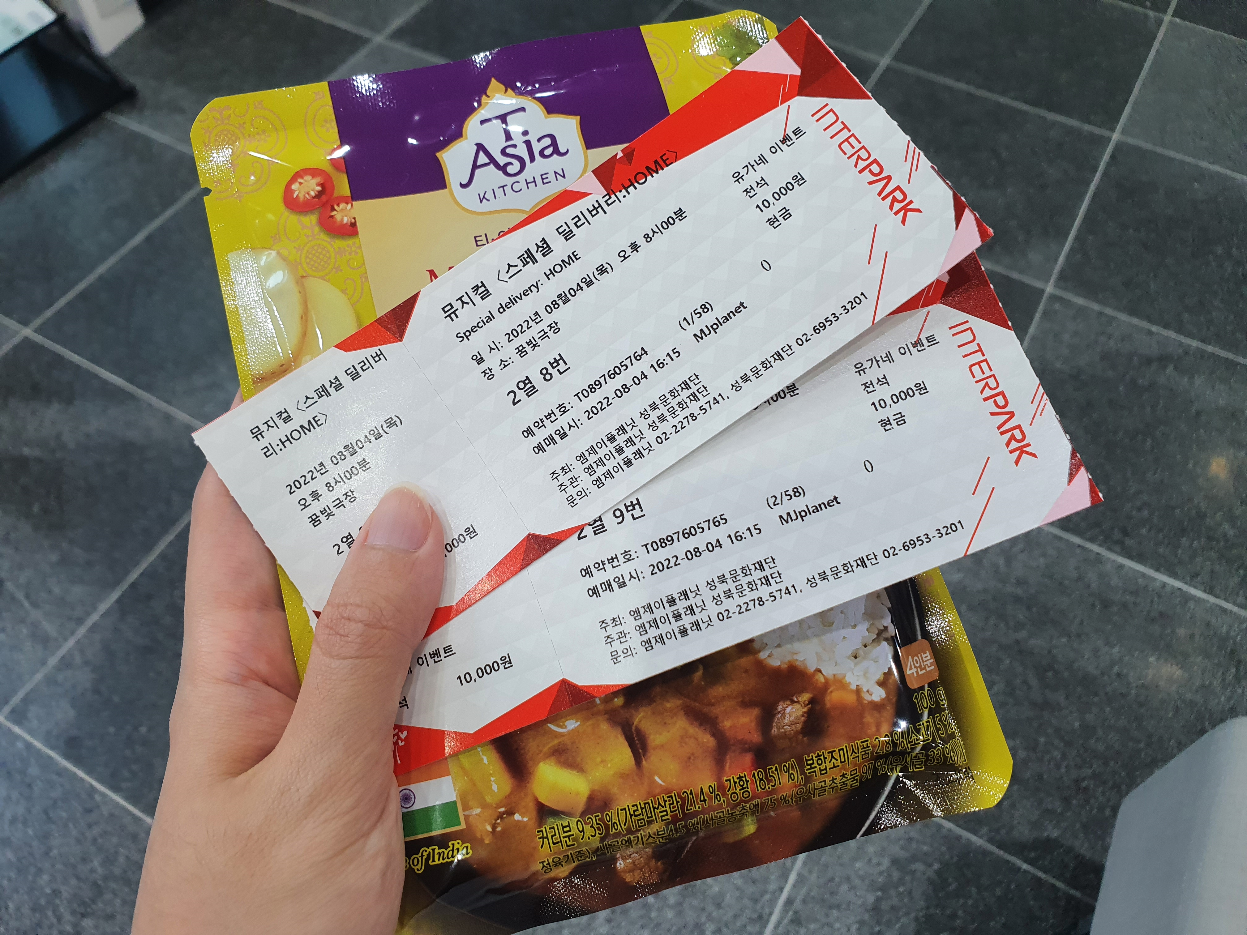 티켓을 수령하면 티아시아 카레도 하나씩 나눠준다. 티아시아에서 이렇게 뮤지컬을 통해 홍보할 정도면 그래도 꽤 인지도 있는 뮤지컬이라고 생각했다. 공연이 끝나고 QR코드로 설문조사에 참여하면 추첨을 통해 유가네 닭갈비 1만원권도 준다고 했는데, 추첨인 데다가 닭갈비도 아니고 닭갈비 1만원권이라서 별로 탐나지 않았다.