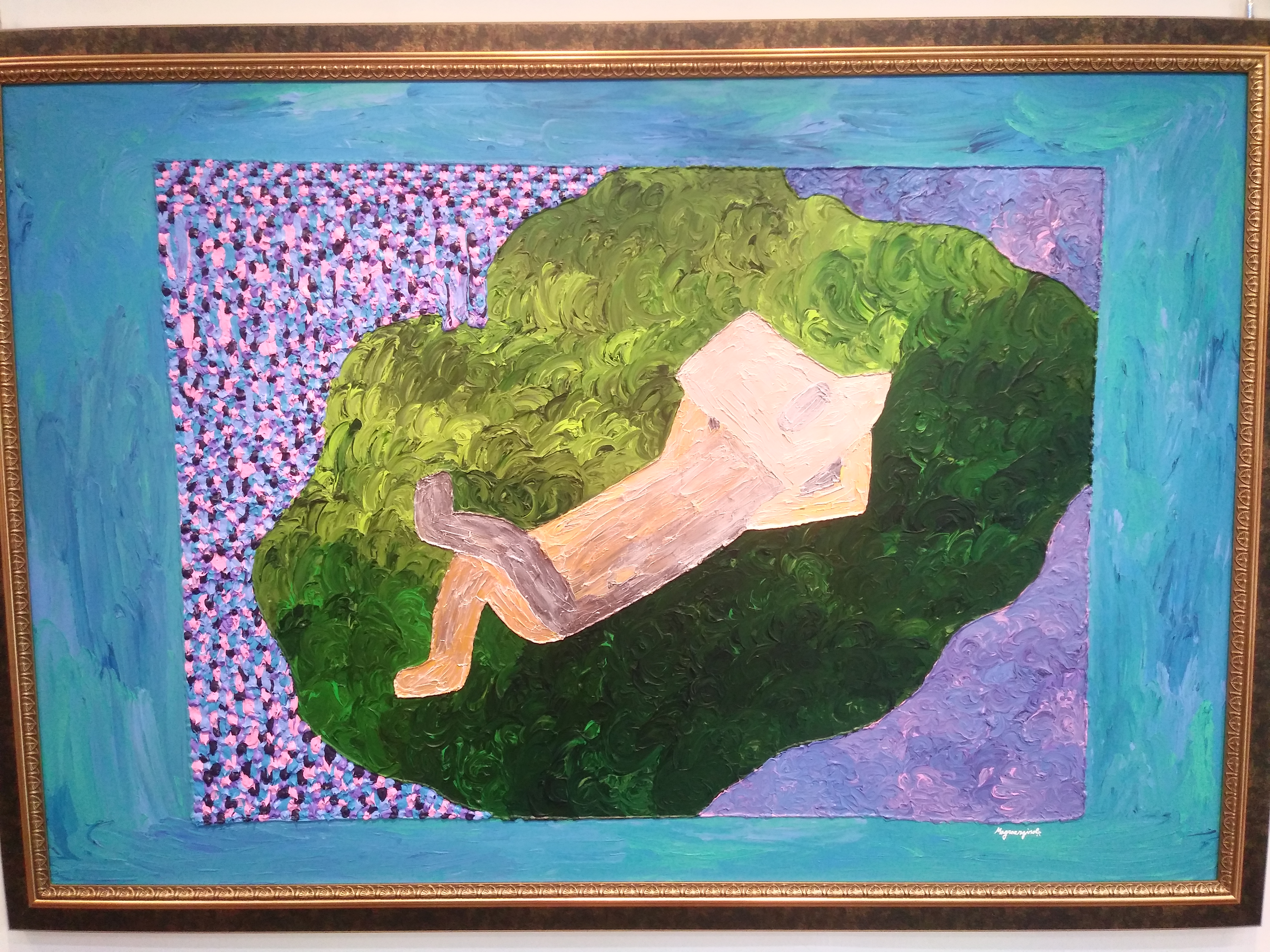파란색은 하늘이 될 수도 있고, 바다가 될 수도 있다고 했다. 그리고 알록달록한 부분은 꽃이라고 했다. 이 작품에서도 왼쪽의 알록달록한 부분은 꽃이라고 했다. 가장 마음에 들었던 작품이다. 왜인지는 잘 모르겠다.