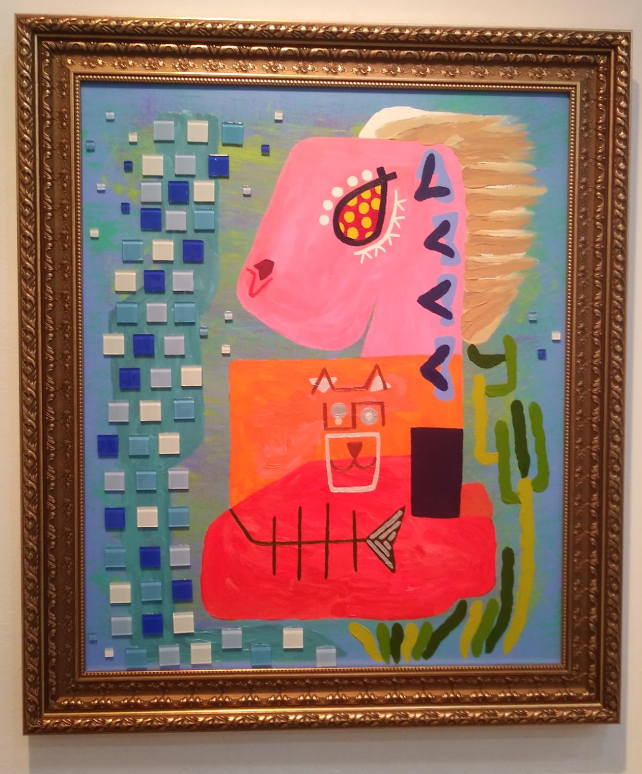 전시관 이름을 이 글을 쓰면서야 봤는데 안쪽의 작품이 엄마의 작품이고 바깥쪽이 딸의 작품이었나 보다. 딸로 추정되는 그 작가님이 직접 작품 설명을 하고 있었고 옆에서 엿들었다. 진짜 그림의 형체는 말이라고 한다. 그리고 그 말의 생김새가 비슷해보이지만 작품마다 다르다고 했다. 예를 들어, 말의 눈에 감정을 담았다고 했다. 말의 눈에 뱀 형상을 넣기도 했고....그렇단다.